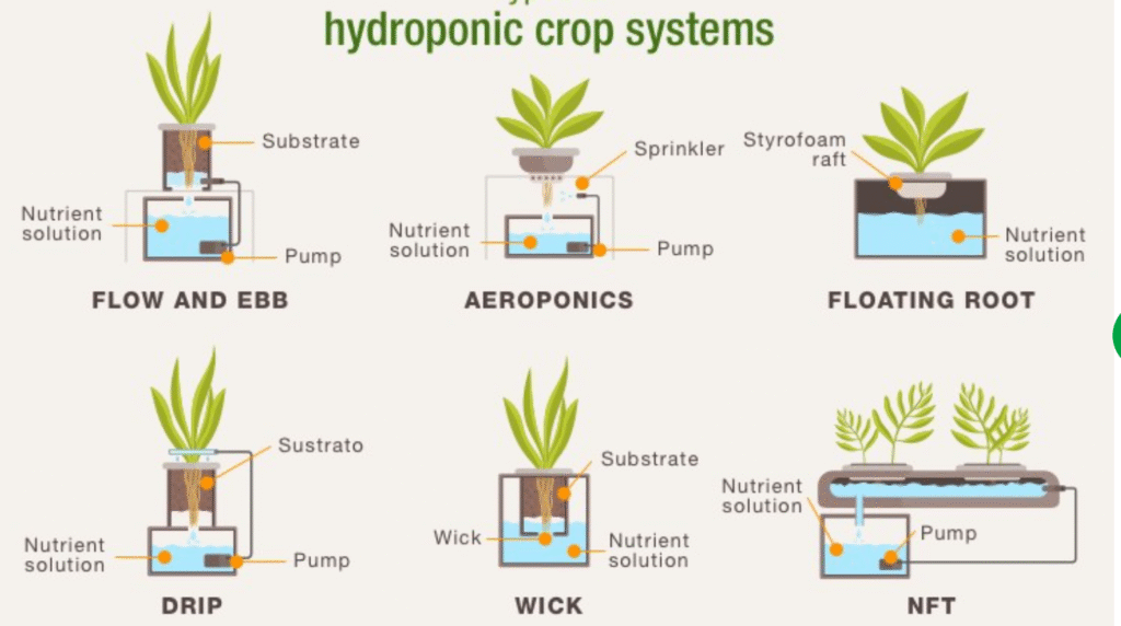 Hydroponic agriculture is a soilless farming method in which plants are grown using water-based fertiliser solutions that deliver vital minerals and water directly to their roots rather than soil. This method encourages faster growth, higher yields, and greater water conservation, making it suitable for a wide range of circumstances, including those with poor soil, limited area, and water constraints. Hydroponic systems can be liquid, with roots directly exposed, or they can support the roots with an inert material like perlite or coconut coir.