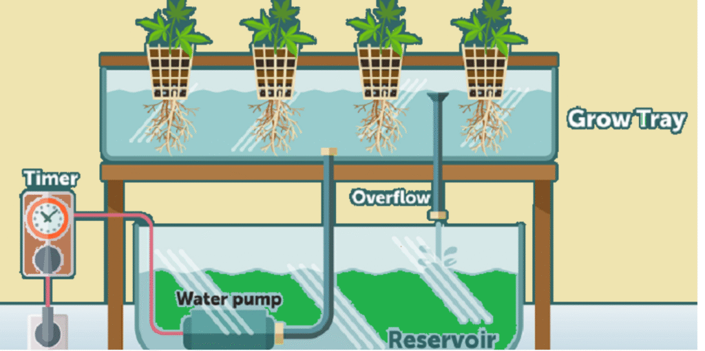 Here is a list of major components of Ebb and Flow hydroponic gardening and how they work together: